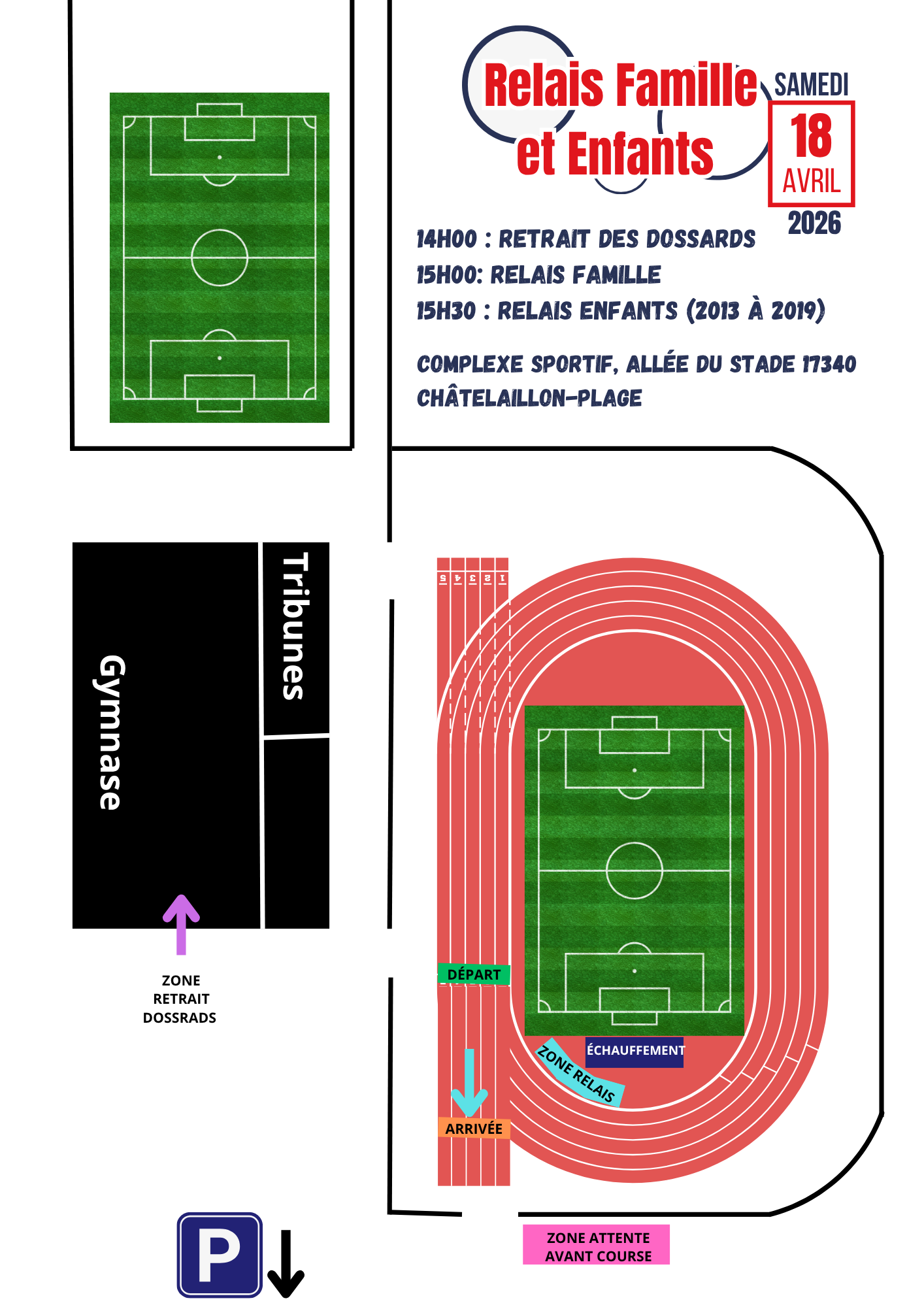 Les relais 1 et 3 (500m) sont réservés aux plus petits (né de 2013 à 2019). Les relais 2 et 4 (1000 m) sont réservés aux plus grands (né en 2012 ou avant).